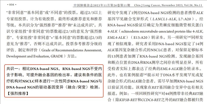 图3 《基于RNA-based NGS检测非小细胞肺癌融合基因临床实践中国专家共识》推荐情况